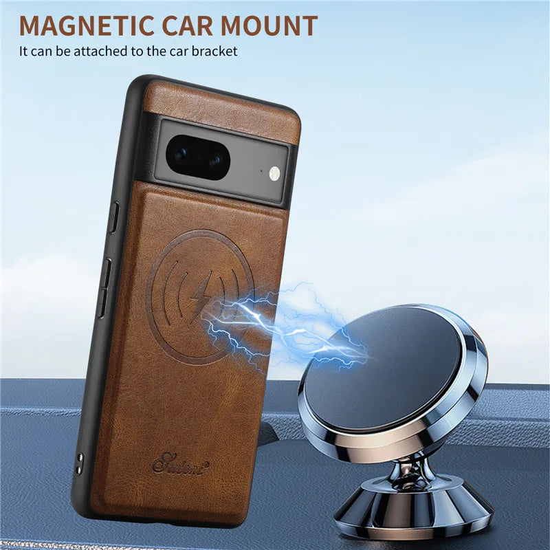 Leather Magsafe Case with Wallet For Pixel Series